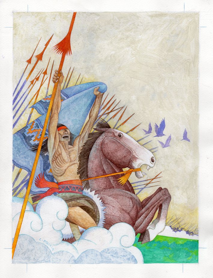 “Les planches à l’acquarelle de Breccia démontrent sans cesse une maitrise absolue de la technique; son acquarelle est classique, par l’impeccabilité de ses surfaces, par l’originalité dont se succèdent les différents plans ; par la pureté des formes qui prennent chacune une importance particulière; par la lumière qui soutient la vitalité des couleurs. Ses travaux ne sont pas des images, mais des visions qui créent un monde en soi, avec une cohérence qui lui est propre, aussi bien du point de vue du style que des tons. Il est évident que Breccia est un modèle de communication rude et essentiel, qui se lie par une technique rigoureuse dans une grande recherche d’équilibre entre l’équilibre graphique et l’équilibre tonale.
