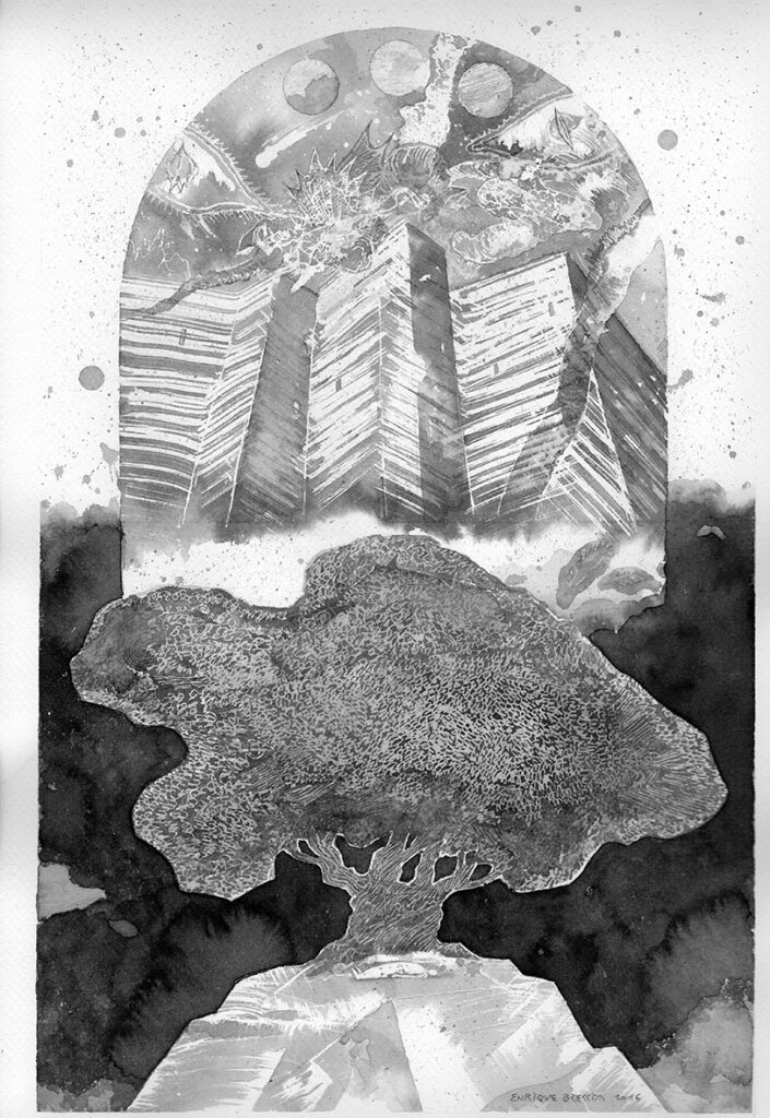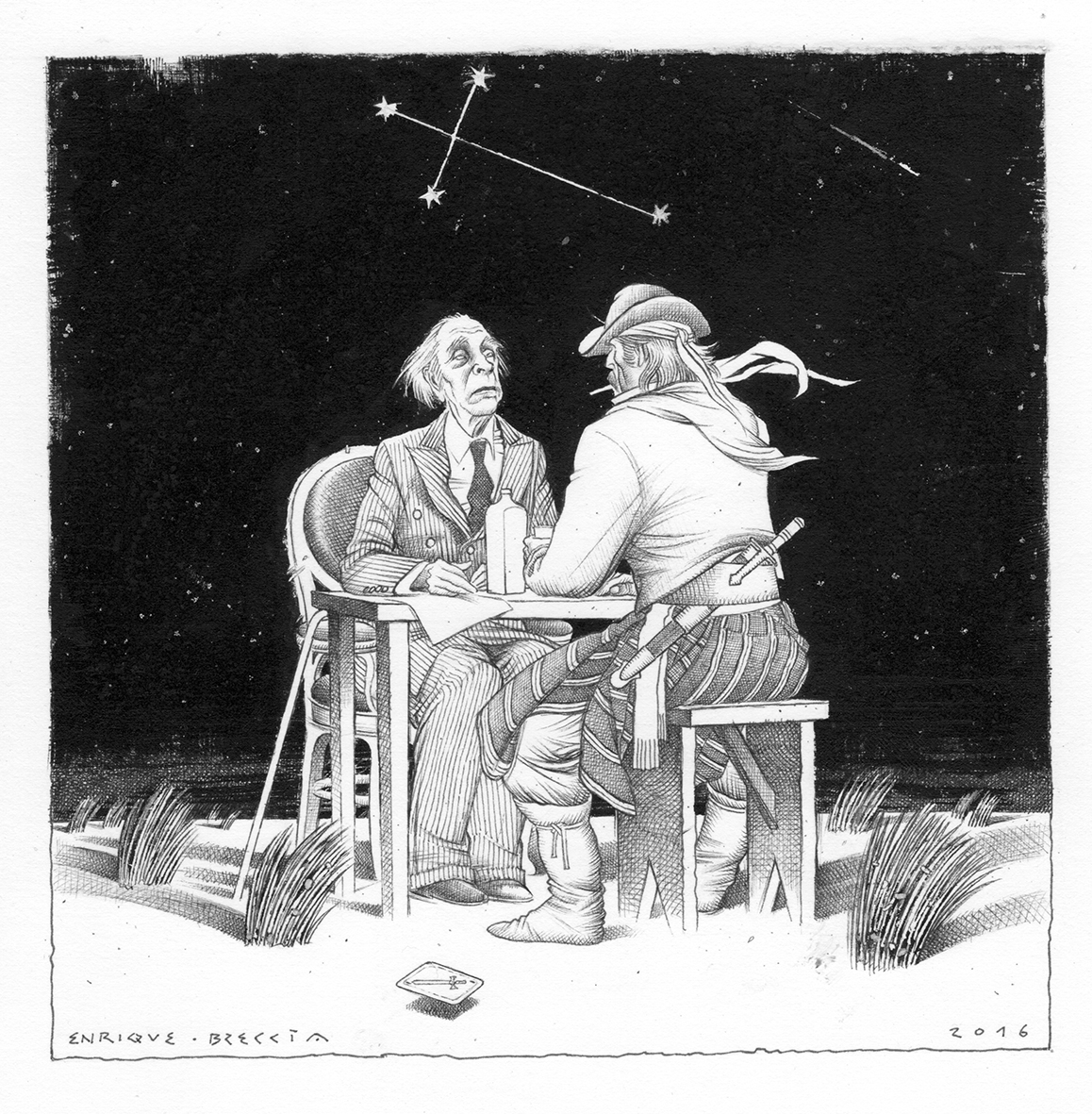 Per Enrique Breccia l’arte è come il naturale evolversi dello spirito dell’uomo verso ciò che ha di più elevato: il desiderio e la sete di fare arte e cultura. Enrique Breccia fa arte attraverso la cultura e produce cultura attraverso l’arte, quasi in un imprescindibile rapporto e in una inconsapevole interazione.”