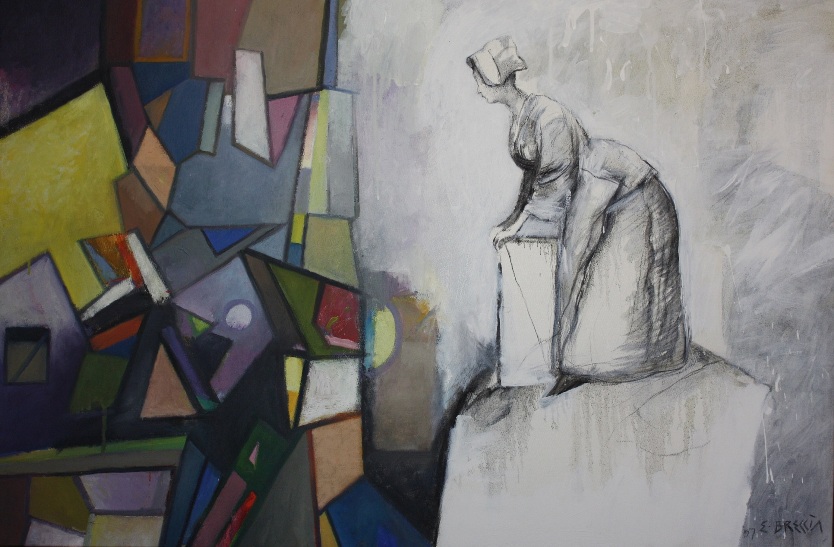La pittura di Breccia vive di un respiro magico al di fuori di ogni definizione: sta in quella pittura ove costruzione cromatica, narrazione, interiorità timbriche del colore si fondono in una sola armonia. Gli elementi simbolici ed emblematici che corredano un volto o una situazione danno la sensazione di un mondo inquietante, pregno di significazioni allusive e pervaso da una atmosfera mitica e atemporale.”